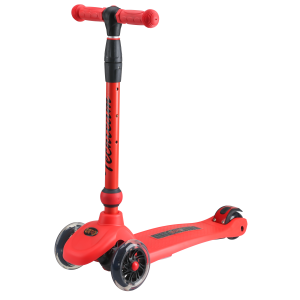 Колеса самоката выполнены из прочной пластмассы со специальным полиуретановым покрытием, обеспечивающим в совокупности с подшипниками стандарта ABEC 9, хорошие накат и амортизацию. Размер передних колес 135х50 мм, заднего (сдвоенного) — 90х24 мм. Заднее сдвоенное колесо оснащено крылом-тормозом с металлической пластиной-усилением. Все колеса самоката имеют так любимую детьми светодиодную подсветку, которая запускается при движении.
